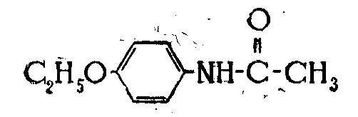 Основные жаропонижающие вещества являются производными па-рааминофенола, пиразолона или салициловой кислоты. Производные парааминофенола. Замещение одного водорода в бензоле гидроксильной группой ведет к появлению новых свойств соединения, одним из которых является про-тиволихорадочное действие. Это действие значительно возрастает, если вместо гидроксильной группы в бензол вводится аминогруппа (анилин ) или две группы— амино- и гидроксильная [ацетил-аминофено л ]. Однако такие соединения наряду с жаропонижающим действием обладают и очень высокой токсичностью, почему и не применяются с лечебной целью. Замена одного водородного атома аминогруппы кислотным остатком (антифебрин) не только снижает токсичность препарата, но и резко повышает его жаропонижающее действие. Токсичность понижается еще больше, если, кроме изменений в аминогруппе, водород гидроксильной группы заменить алкоголем ( фенацетин). Механизм жаропонижающего действия препаратов этой группы обусловлен угнетением центра теплорегуляции и отчасти непосредственным сосудорасширяющим действием. Фенацетин (параацетофенетидин) — Phenacetinum. 1-Этокси-4-аце- таминобензол.