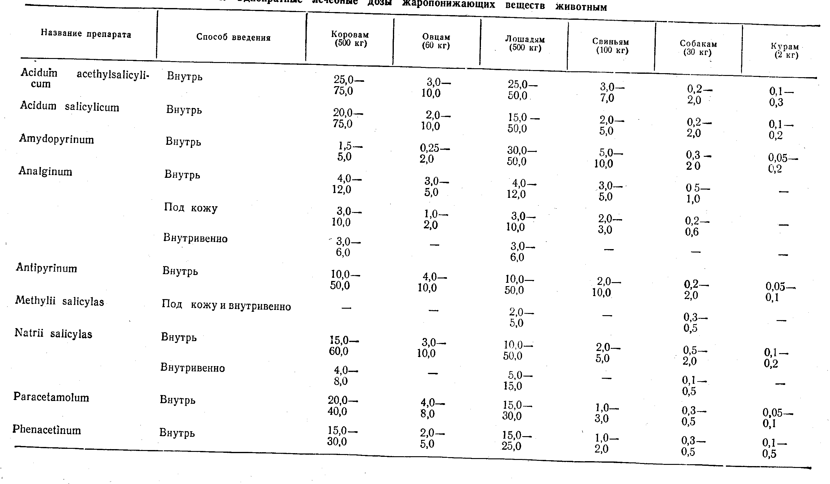 4. Однократные лечебные дозы жаропонижающих в еществ Животным