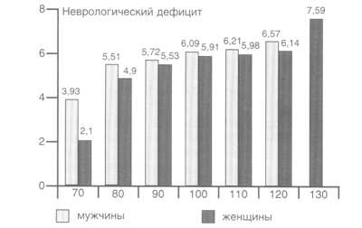 Рис. 1. Зависимость исходного неврологического дефицита от ОТ.