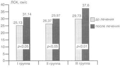 Рис. 4. Изменение мозгового кровотока на фоне исследованных вариантов терапии.