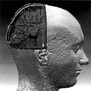 Поскольку локализация источника альфа-ритма проводилась на “обобщенной” трехмерной модели головы, мы сочли необходимым подтвердить его местоположение для каждого испытуемого с помощью ЯМР-томографии. Полученные трехмерные карты структур мозга (с пространственным разрешением около 1 мм) каждого конкретного человека, участвовавшего в опыте, совмещали по определенной программе с картами, которые отражали локализацию диполей альфа-ритма. Благодаря такому наложению двух видов трехмерных карт впервые удалось прямо выявить, что дипольный источник альфа-волны во время ее движения последовательно смещается по шпорной извилине. Это непосредственно, а не косвенно, свидетельствует в пользу гипотезы сканирования.